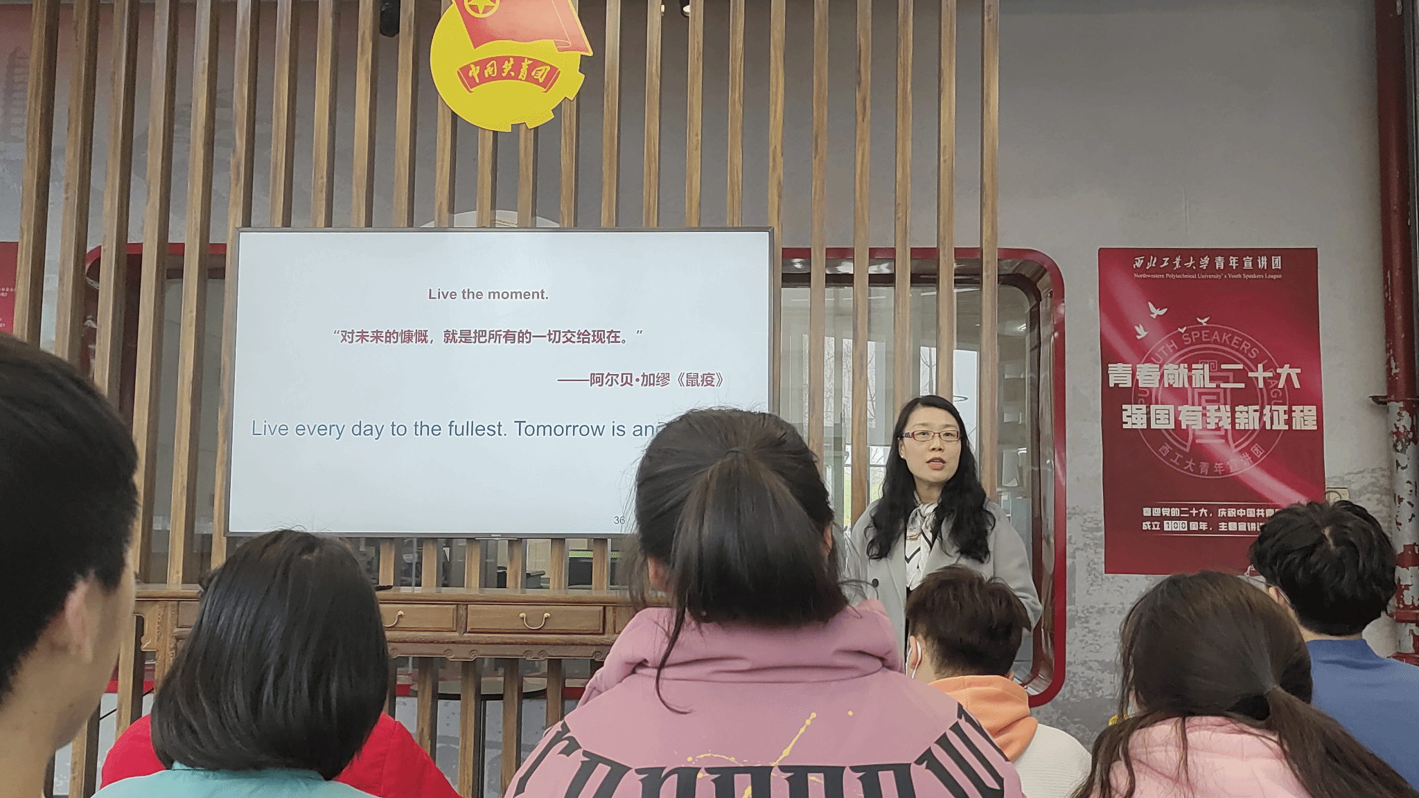 为了提升同学们的文化素养,帮助同学们确立良好的自我意识、形成独立人格、树立充分的“文化自觉”,3月22日下午,必赢bwin官方网站第七期“讲道理:以研促教seminar”系列活动邀请了教育部陕西省教学名师、必赢官网艺术教育中心主任孙瑜老师讲述题为《美之所往 愿达彼方——做最好的自己》的大思政课。本次活动在长安校区图书馆红色书屋开展,来自教育实验学院、软件学院等多个学院的师生参与此次活动。必赢bwin官方网站党委副书记(主持工作)蒲传新主持本次活动。