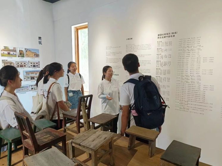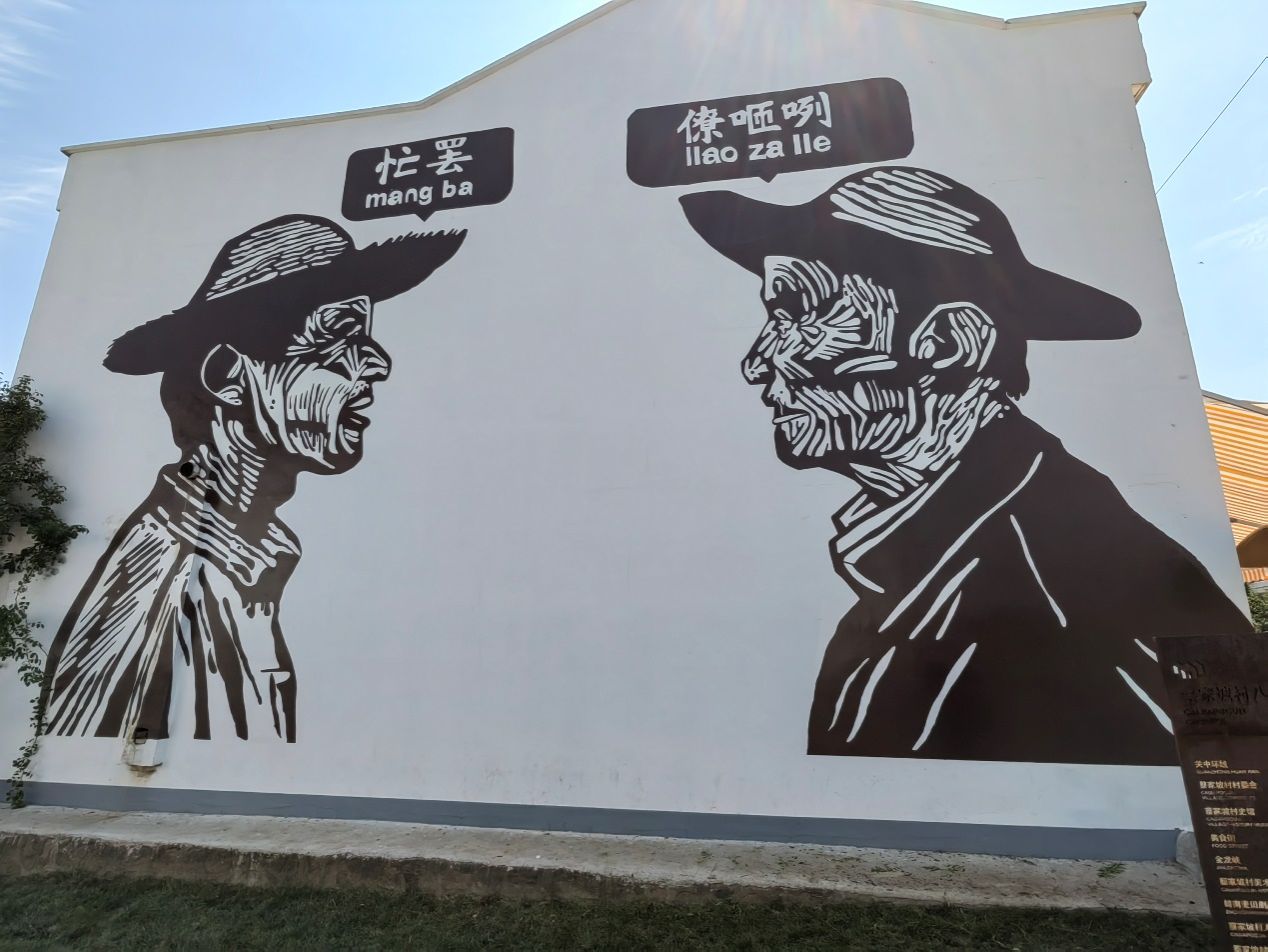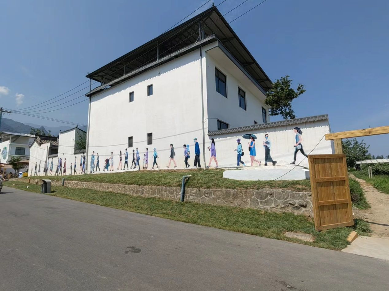 国有史,地有志,家有谱。对于艺术赋能的蔡家坡村来说,做到便利与美观同步,艺术与乡土共荣更是吸引广大游客、激发年轻活力、推动乡村振兴发展的重要引擎。7月19日下午,实践队前往村史馆进行参观,沿途能看到墙体上的巨幅人物彩绘,村道两旁的装置艺术作品,特色农居墙体的生动彩绘形象,一座座形态各异的雕塑,都让蔡家坡村从原始的村容村貌转变成如今艺术气息浓厚的宜居小镇。这些画上所绘都是淳朴熟悉的乡民形象,有的手捧“户太八号”葡萄,有的背靠漫野绚烂花草,有的站在茂盛的橘子树下,有的躬耕于田垄之中。“榜样是看得见的哲理,典型是鲜活的价值引领”,这些形象被勾勒出来,映在眼前,比标语更鲜明动人,也更加温暖。