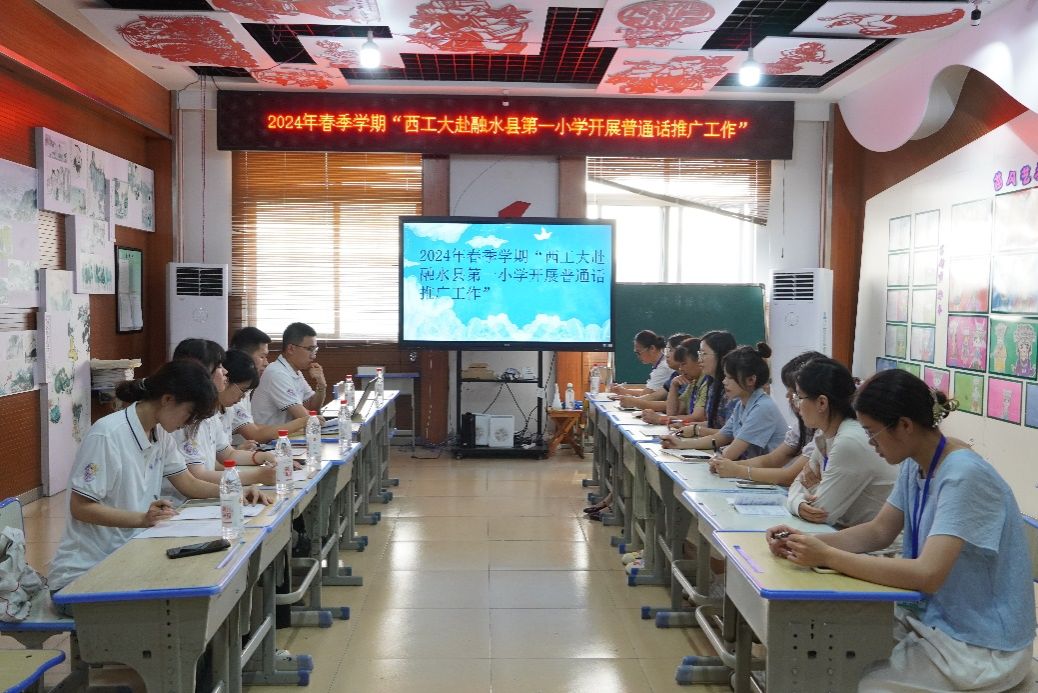 为深入贯彻落实党的二十大关于“加大国家通用语言文字推广力度”的决策部署,贯彻落实习近平总书记关于教育的重要论述和关于推广国家通用语言文字的重要指示精神,促进少数民族地区人才培养,引导学生为乡村振兴和现代化建设事业贡献青春力量。2024年7月10日下午,必赢bwin官方网站“苗乡振兴·水韵融情”实践队赴广西融水苗族自治县第一小学开展座谈调研。融水苗族自治县第一小学教务处主任与教师代表参加座谈。
