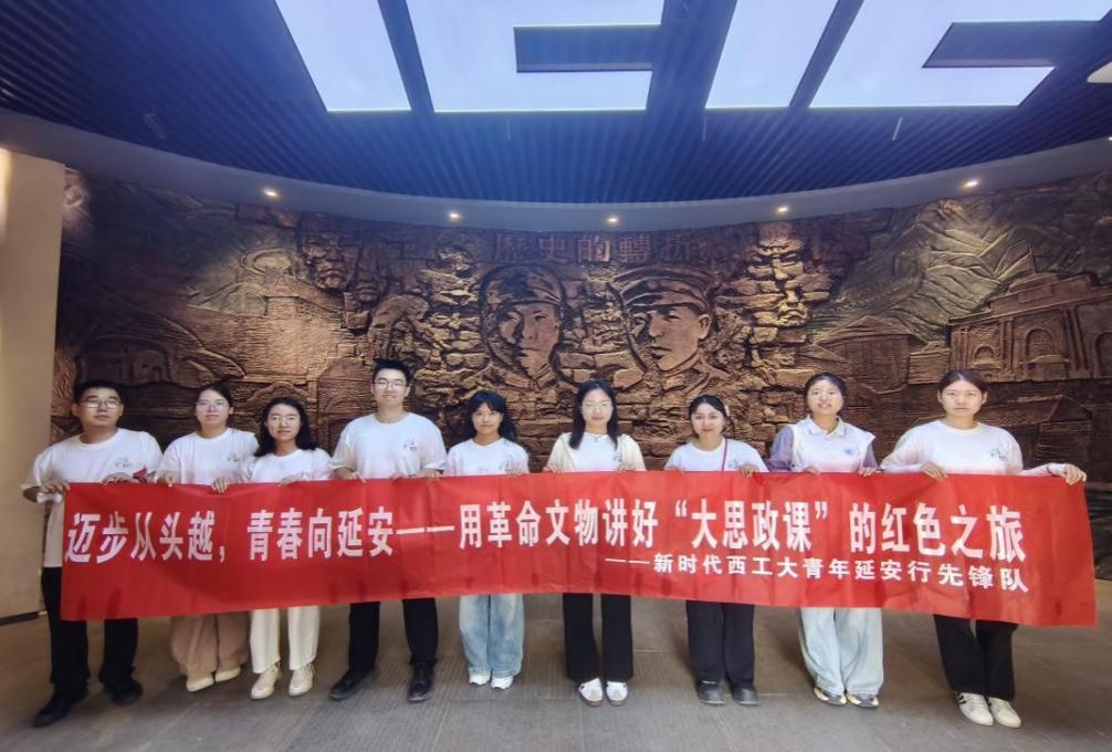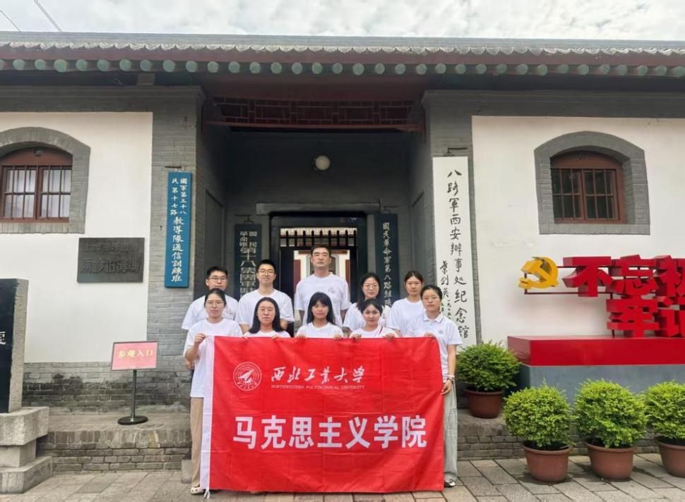 为深入学习贯彻党的二十大精神和党的二十届三中全会精神,充分发挥革命文物在思想政治教育中的独特作用,必赢bwin官方网站“新时代西工大青年延安行先锋队”从西安出发,赴咸阳、铜川、延安等地开展专题调研活动。7月11日,在指导老师杜轶伦的带领下,实践队一行10人第一天先后走访八路军西安办事处纪念馆、西安事变纪念馆、安吴青年训练班革命旧址和薛家寨革命旧址等地,通过实地考察、专题研讨、思政课宣讲等形式,探索新时代用革命文物讲好“大思政课”的创新路径。