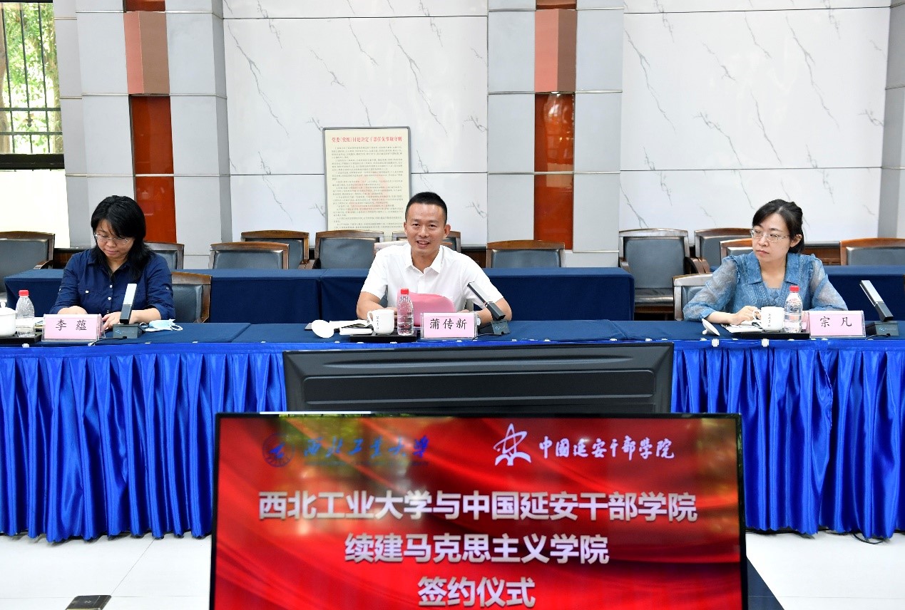 2022年9月9日上午,必赢bwin官方网站与中国延安干部学院续建必赢bwin官方网站签约仪式在友谊校区东会议室隆重举行。中国延安干部学院副院长赵耀宏,教学科研部副主任兼西部国情研究中心主任王东仓,教学科研部综合处(教学管理处)处长叶丹,必赢bwin官方网站党委副书记陈建有,科学技术研究院副院长李蕴,必赢bwin官方网站院长杨云霞,必赢bwin官方网站党委副书记(主持工作)蒲传新,党校副校长兼党委组织部副部长王玉玲,学校办公室副主任宗凡,必赢bwin官方网站副院长贺苗,院长助理马军、赵海霞,办公室主任郭雅楠等出席了续签仪式。会议由蒲传新主持。