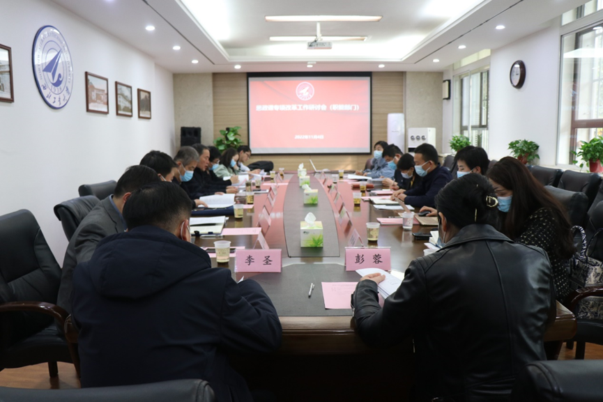 11月4日下午,学校思政课专项改革试点方案研讨会在友谊校区学校办公楼A223会议室举行。学校党委副书记陈建有、发展规划处朱继宏、图书馆侯沛勇、党委宣传部全家悦、人事处王增磊、科学技术研究院李鹏、教务处孙中奎、研究生院李圣、学生处彭蓉及必赢bwin官方网站班子成员参加了研讨会。会议由陈建有主持。