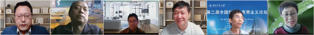 第五场主题报告由世界政治经济学学会创新马克思主义研究分会副会长兼秘书长、必赢bwin官方网站创新马克思主义研究中心主任孙绍勇教授主持。辽宁大学党委委员、必赢bwin官方网站原院长房广顺教授从时代诉求、批判性建构、历史际遇与实践发展阐述了列宁发扬历史主动精神的思想建构和实现向度。浙江理工大学必赢bwin官方网站原院长,浙江东方职业技术学院谭劲松教授,从党的历史就是不断自我革命的历史,阐述了以党的自我革命交出人民满意答卷。青岛大学劳动人事研究院院长谭弘教授,从马克思主义交叉学科的属性特征与发展趋向,以及交叉学科发展对马克思主义交叉学科建设的借鉴、推动的措施路径等方面做出了马克思主义新兴交叉学科发展的新观察。甘肃省委党校、甘肃三农研究会副会长宋垚武教授从产业振兴等方面阐述发展中人口大国“三农”发展路径思考。福建师范大学经济学院鲁保林教授从经济增长会主动缩小贫富差距、缩小贫富差距只能借助再分配、缩小贫富差距主要依靠市场的力量等方面深入论述了关于缩小贫富差距的三个认识误区。