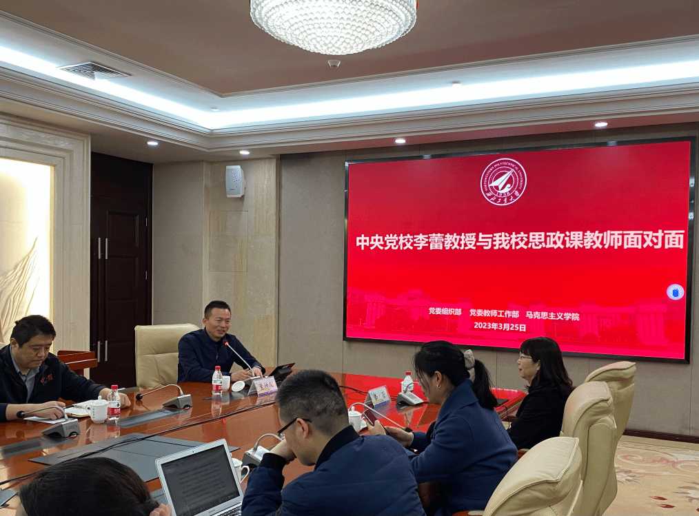 3月25日上午,中央党校李蕾教授与必赢官网思政课教师面对面活动在友谊校区国二会议室召开。本次座谈会在学校党委组织部、党委教师工作部的大力支持下,邀请到中央党校经济学教研部教授、中央党校创新工程执行专家、中央党校经济学部科研秘书,省部级干部培训班主讲教师李蕾教授,同必赢官网思政课教师进行交流座谈。必赢bwin官方网站思政课教师参与座谈会,会议由必赢bwin官方网站党委副书记(主持工作)蒲传新主持。