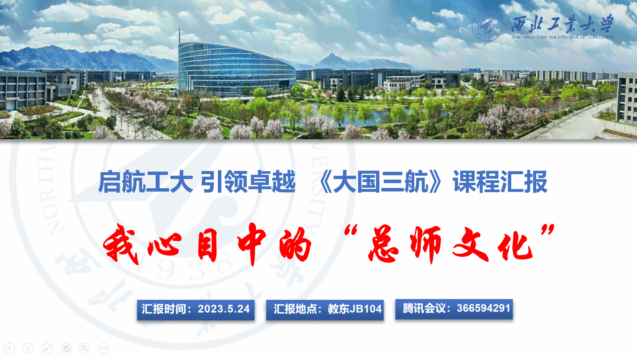 5月24日,《大国三航》课程开展学业汇报,主题为《启航工大 引领卓越 我心目中的“总师文化”》。前期课程组织学生自主挖掘本学科本学院发展中的优秀成果、团队、个人和事迹,在深入了解学校辉煌历程的过程中深刻凝练自己心目中的“总师文化”。同学们谈到对总师型人才和总师文化的认识时,饱含热情和钦佩,用“纯粹的人”“苟以国家生死以,岂因祸福避趋之”“创新、协同、责任、卓越”“不图名利、不畏苦累” “总师不是遥不可及,就是我们的学长,他们的光环是多年的不懈努力和奉献,我更感受到要克服卡脖子技术的紧迫,这是我们未来努力的方向”等这样的语句和词汇,并引用校领导提出的“所谓总师,是既具有足够强的个人科研能力,又具有一定的国际视野和战略高度,还具有相当组织能力的科技领军人物”。同学们以课程所学、亲身实践和思考体悟,提出自己对学校人才培养目标的认识。