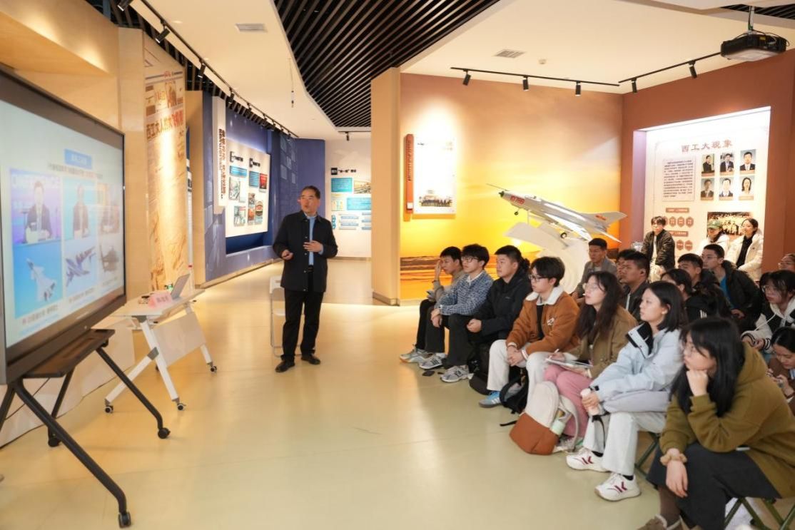 外国语学院杨欣冉:今天在陈老师的带领下,我深刻领悟了西工大以“教育救国、航空报国、军工强国”的重要性,目睹了学校从抗日战争时期的艰难办学到如今“国防七子”的辉煌历程。校史馆通过展板、实物模型、校史文物等多元展陈,让我能直观感受到学校与国家命运的同频共振,作为老一辈西工人将毕生精力投入国防科研,打破国外技术垄断,对这种“把一切献给党”的军工精神感到震撼与骄傲,深刻体会到个人理想与民族复兴的紧密联系,激发“强国有我”的使命感。