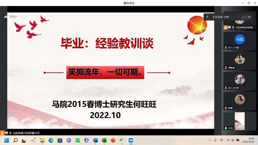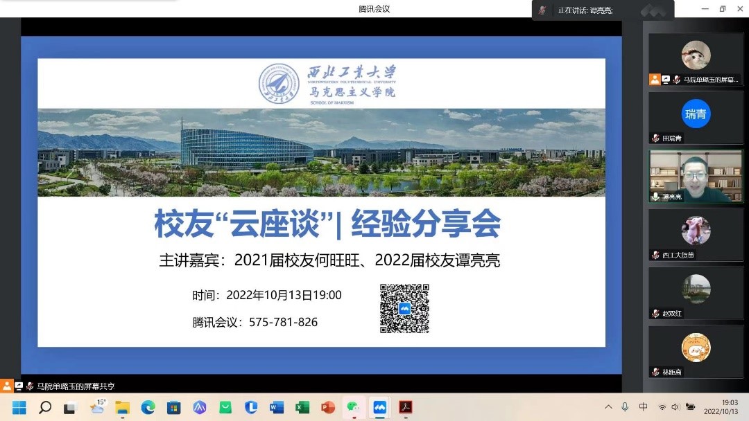 为进一步加强校友和学院之间的联系,凝聚校友力量,畅通经验交流渠道,必赢bwin官方网站以学校第十届校友周活动为契机,按照校友会总体安排,积极举办校友“云座谈”经验分享会。10月13日晚校友经验分享会于线上进行,学院邀请了两位就职于高校的博士校友,他们分别是2021届校友何旺旺和2022届校友谭亮亮。会议由必赢bwin官方网站副院长贺苗主持。