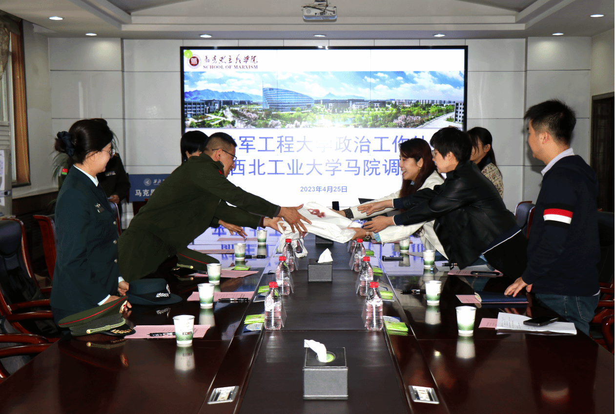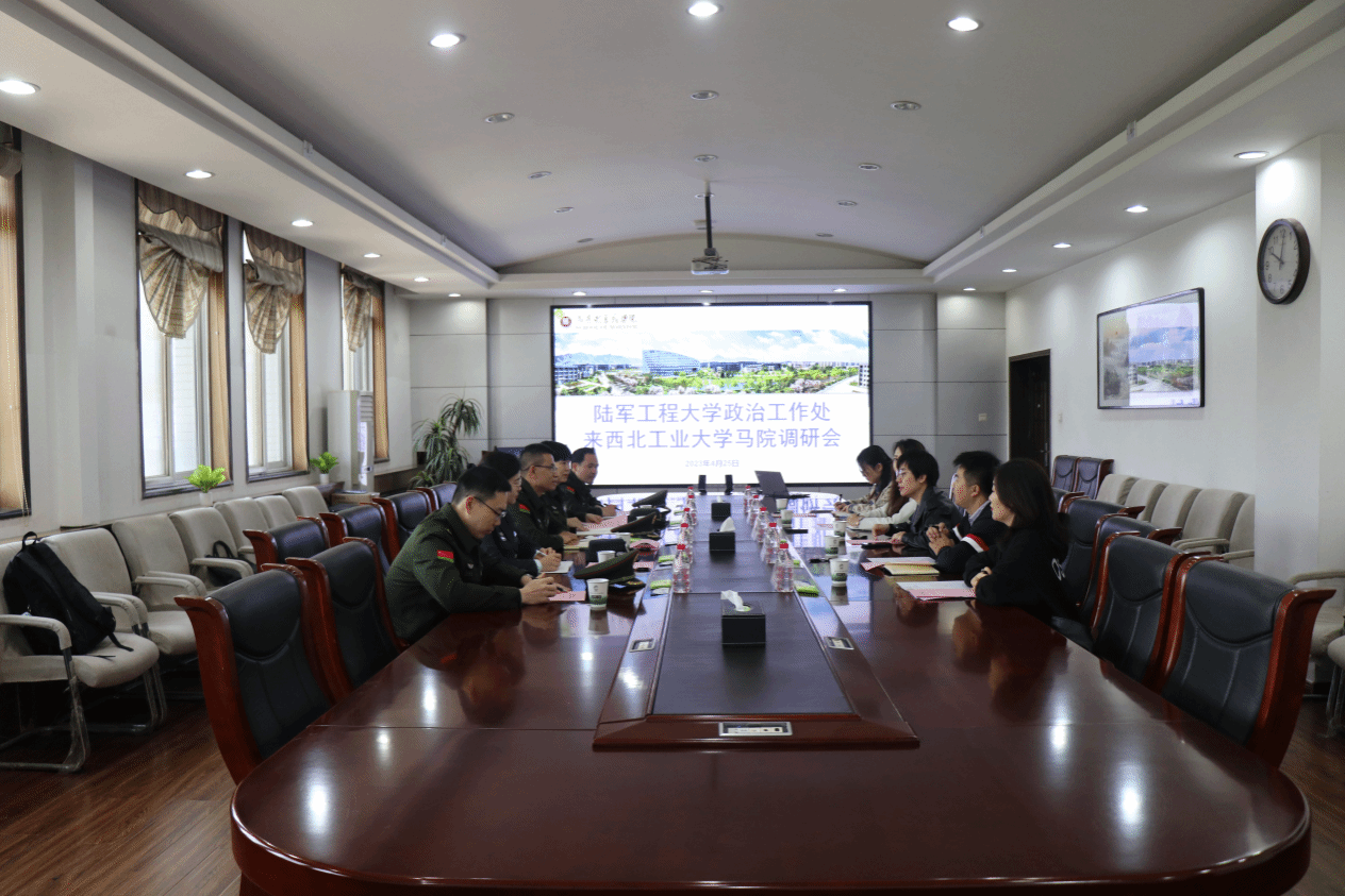 贺苗代表必赢bwin官方网站对陆军工程大学政治工作处的来访表示欢迎,并就学院概况、研究机构、师资队伍、思政课建设、公共课教学、陕西省重点舆情信息研究中心建设、虚拟仿真实验室建设等情况作详细介绍,同时结合自己思政课教学实践,介绍了思政课教学及其改革、一流课程建设尤其是虚拟仿真课程的建设情况和经验。她表示,学校党委对必赢bwin官方网站的建设高度重视,对思政课教学、马学科发展、学院师资队伍建设、高层次人才引进、“大思政课”建设上大力支持,学院上下积极落实“集全校之力办好必赢bwin官方网站”的决策部署,并指出学院后续发展思路、建设规划以及思政课专项改革重点任务举措。