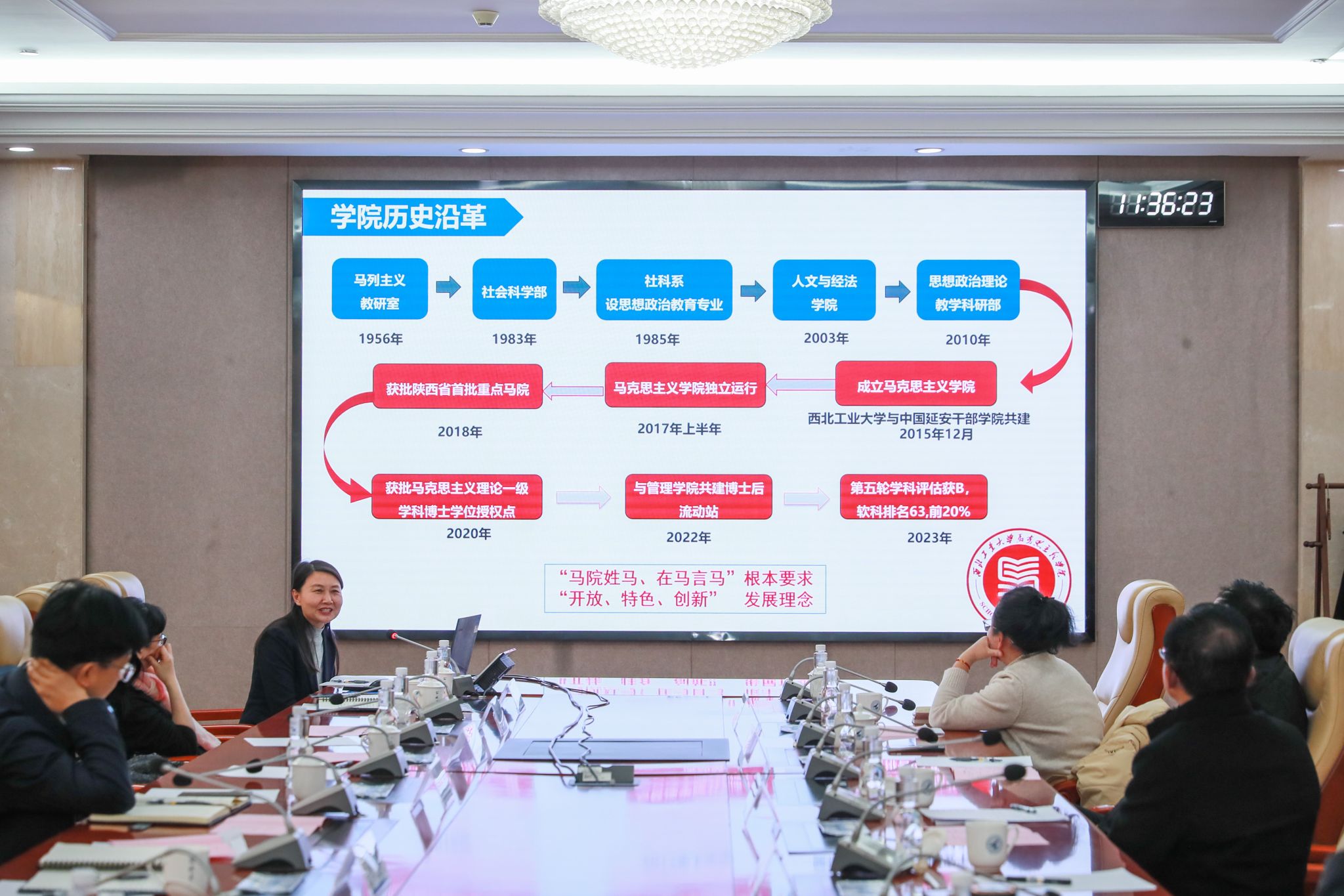 座谈会上,杨晓代表学校致辞,并向来校调研的专家表示热烈的欢迎。他表示,国际形势继续发生深刻复杂变化,百年未有之大变局加速演进。高校必赢bwin官方网站就是要坚持“马院姓马,在马言马”的鲜明导向和办学原则,学校党委高度重视必赢bwin官方网站建设。面对新形势、新任务、新挑战,希望双方能继续发挥学科建设、人才队伍、干部挂职、红色资源、延安精神研究等优势,充分调动双方的力量和资源,拓展以马克思主义理论为牵引的学科方向,进一步扩大“党中央在延安十三年”的新时代学术影响力,进一步提升双方的学术影响力、学科引领力和人才培养质量,不断结出合作共建的新硕果。