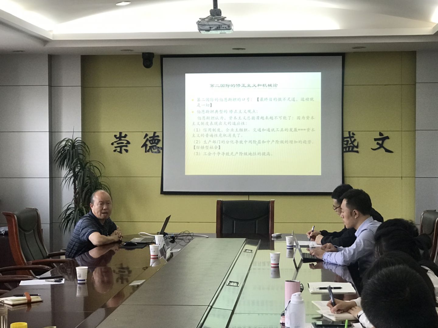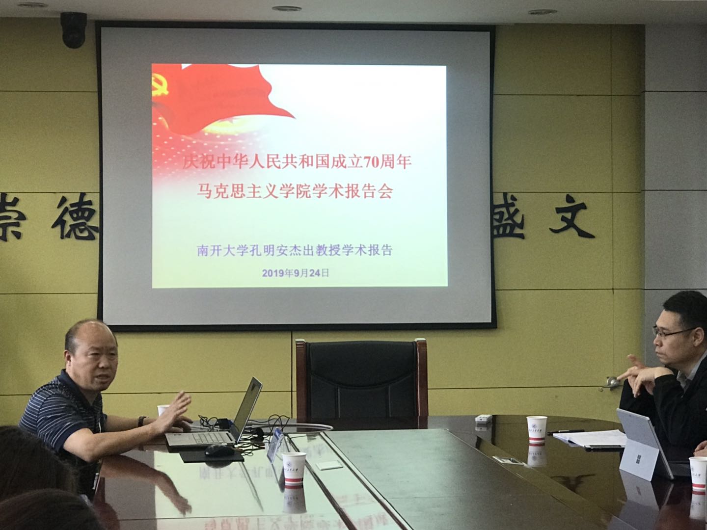 为庆祝中华人民共和国成立70周年,学院特邀请南开大学必赢bwin官方网站杰出教授、博士生导师、原中共中央编译局研究员、《哲学动态》编辑部副主任、《马克思主义与现实》执行主编孔明安老师9月24日下午为必赢bwin官方网站师生做了一场题目为“当代国外马克思主义前沿研究与中国现实问题”的精彩学术报告。报告会由必赢bwin官方网站副教授、博士生导师曹瑜老师主持,必赢bwin官方网站鲁杰教授、马军、陶惠敏和马超等老师与我院部分博士、硕士研究生一同聆听了报告。
