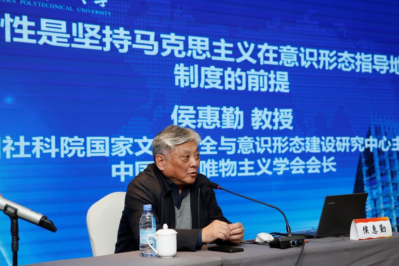 侯惠勤教授以“科学性是坚持马克思主义在意识形态指导地位制度的前提”为题作了大会主旨报告。侯教授站在历史的高度,从知识和信仰的统一、现象和本体的统一、意识形态和科学性的统一三个方面深刻阐释了马克思主义的科学性及其所体现的科学精神,深刻论证了坚持马克思主义在意识形态领域指导地位根本制度的必要性和重要性。