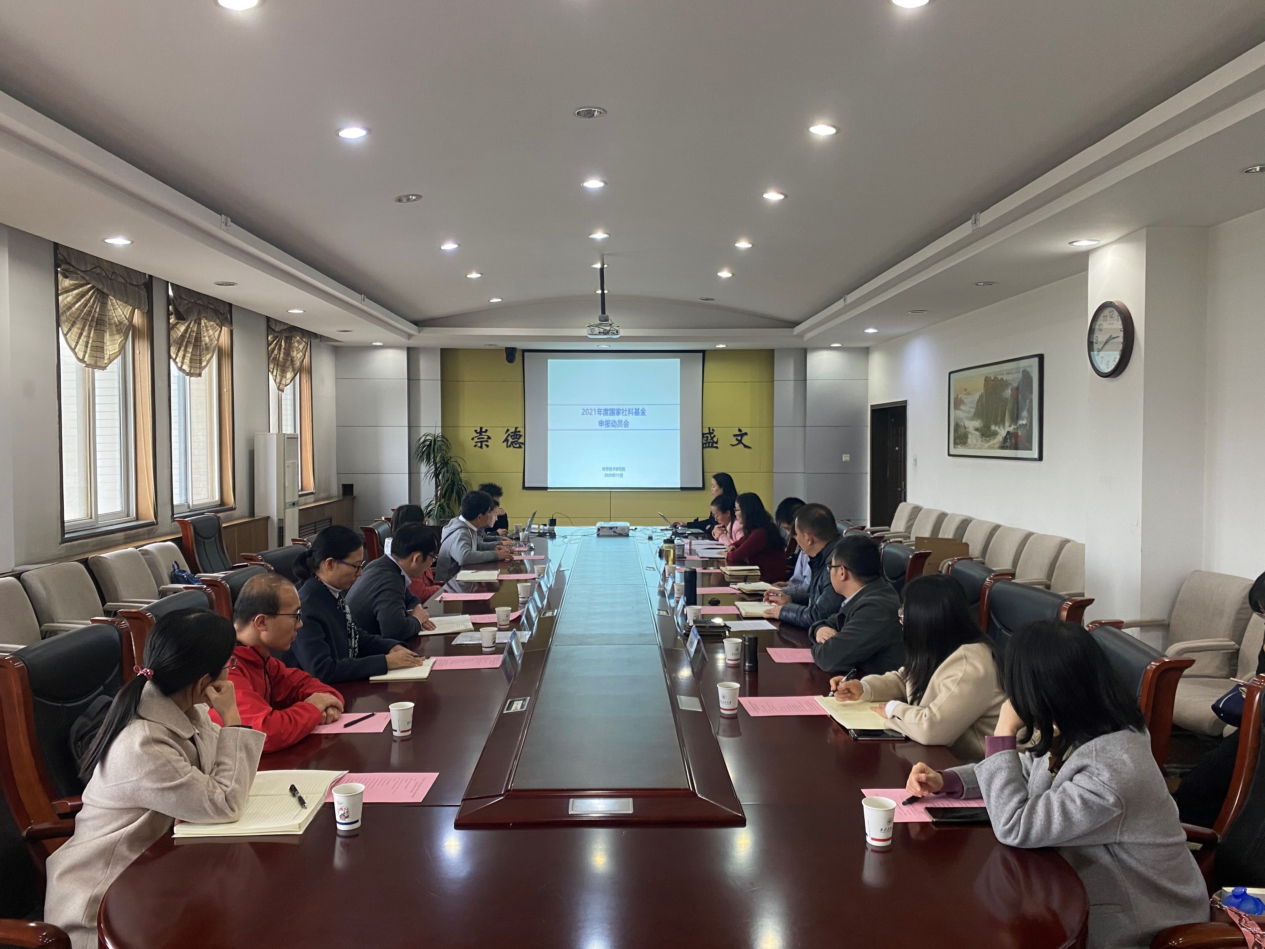 2020年11月19日下午,科学技术研究院副院长李蕴、人文社科部部长李鹏等一行四人来到必赢bwin官方网站楼208会议室召开“2020年国家社科基金申报总结暨2021年社科基金申报动员会”,就马院国家社科基金申报情况和有关问题进行交流。必赢bwin官方网站党委书记吴闻川、副院长郝保权、副书记李刚以及学院部分教授、青年教师、博士研究生参加了会议,会议由副院长郝保权主持。