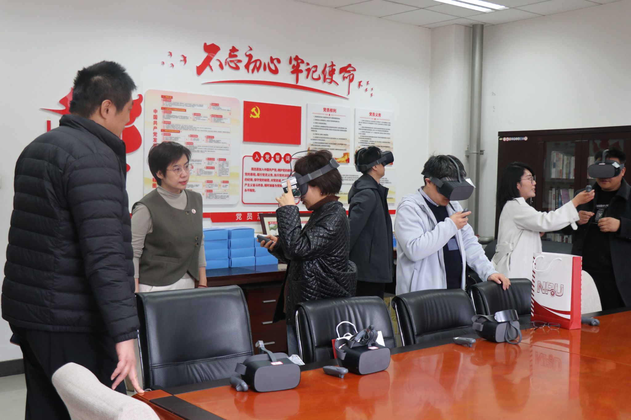 会后,西安工业大学必赢bwin官方网站梁院长一行在学院教师陪同下参观了学院楼宇文化,并在学院党建VR活动室进行了红色之旅VR全景漫游体验和互动交流。双方表示要进一步加强合作交流,在人才共育、学科建设、平台建设等方面互相学习借鉴,实现资源共建共享。