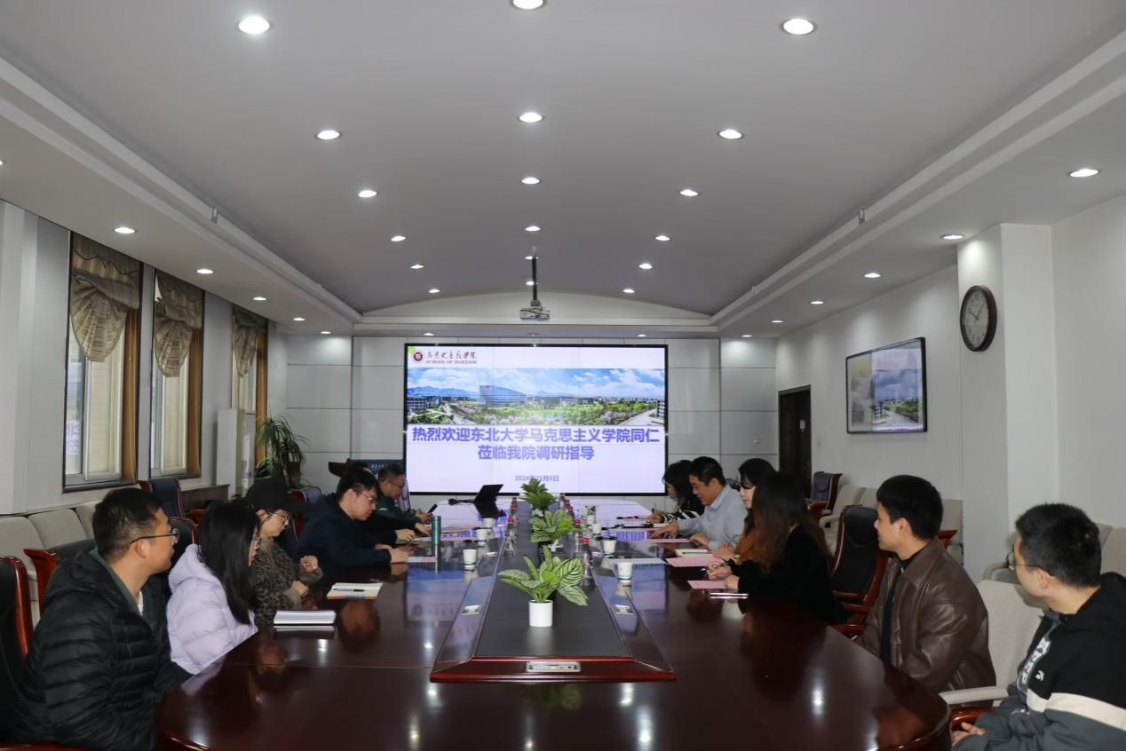 会议开始,李刚对双方参会人员作了简单介绍,并代表学院对东北大学必赢bwin官方网站一行的到来表示热烈欢迎,随后就学院概况、师资队伍、思政课建设、人才培养、就业情况等作详细介绍。他表示,学校党委对必赢bwin官方网站的建设高度重视,学校上下积极落实“集全校之力办好必赢bwin官方网站”的决策部署,并介绍了学院后续发展思路、建设规划等。