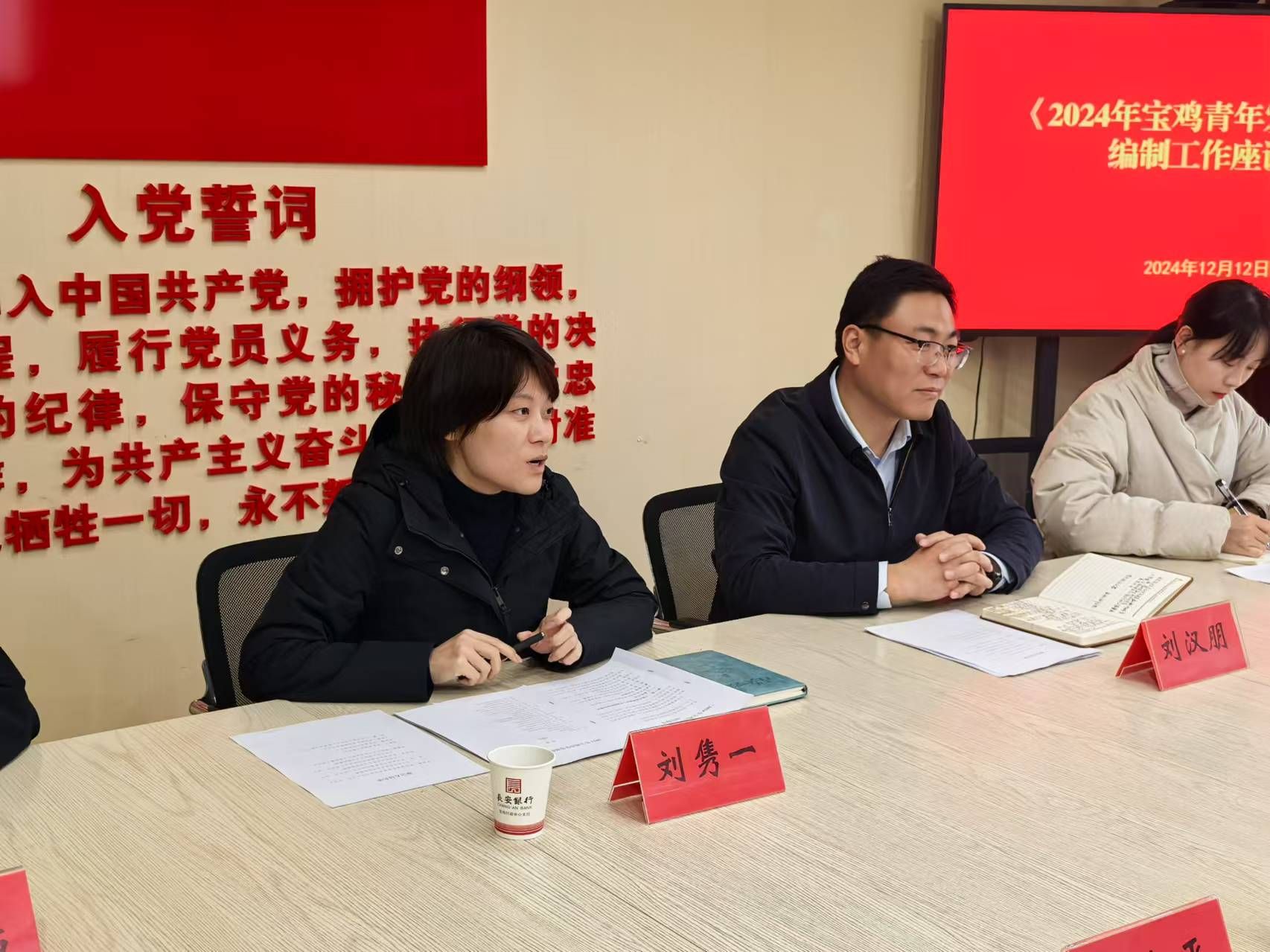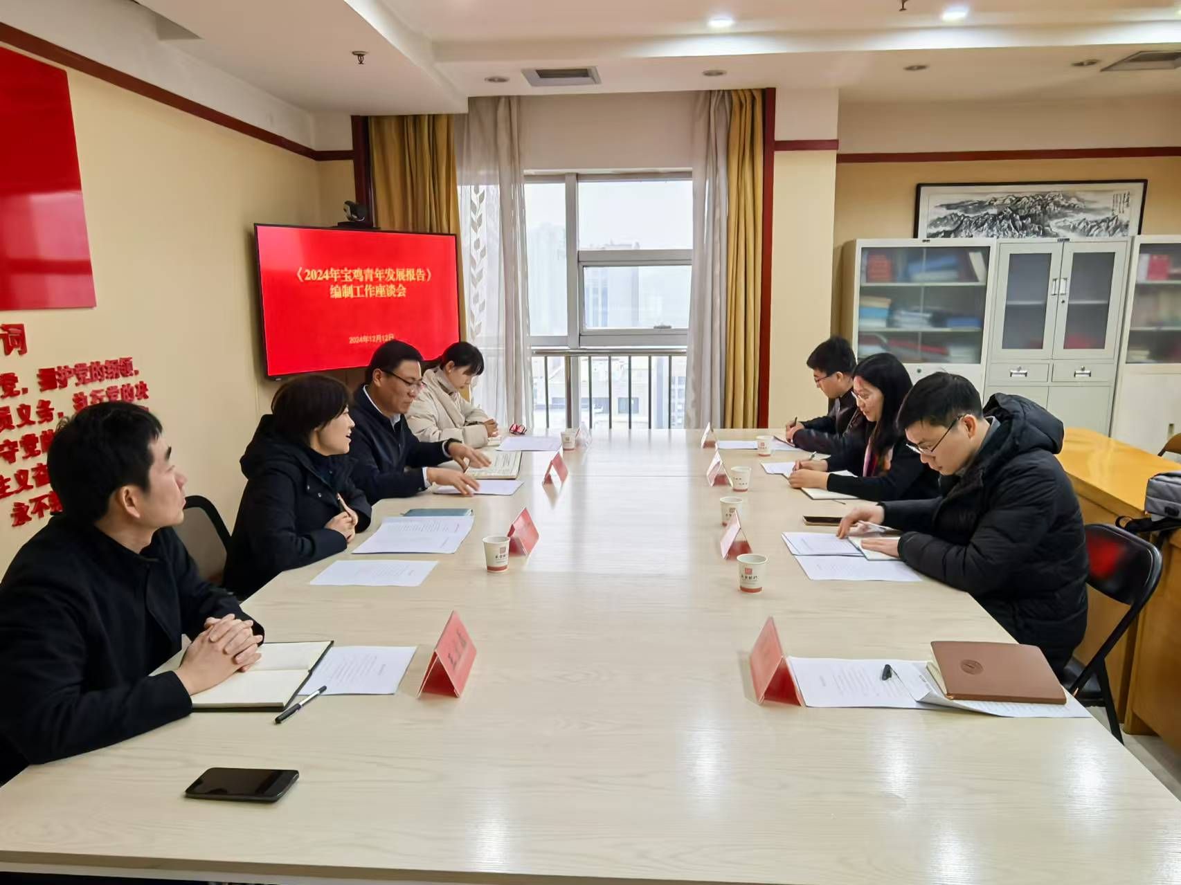 为增强青年发展工作的实效性,为党政青年工作决策和社会治理创新提供可行性、针对性参考意见,同时为深化青年发展城市建设、纵深实施中长期青年发展规划提供实证依据,宝鸡市发布《2024宝鸡青年发展报告》编制项目。2024年12月12日,陕西青年发展规划研究中心与宝鸡团市委进行座谈,共同商讨《2024宝鸡青年发展报告》项目承接以及编制细节。陕西青年发展规划研究中心主任、必赢bwin官方网站副教授宫淑燕、副教授陈诚平、教师折军、博士研究生李燕南参加座谈。