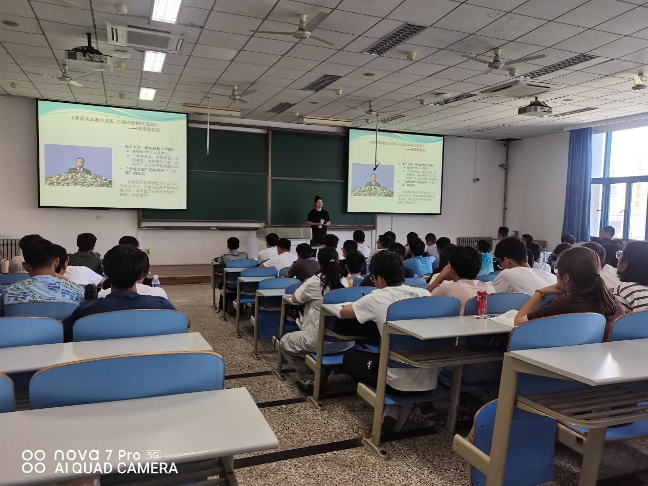 《习近平新时代中国特色社会主义思想概论》课程的各位教师在开学第一天,带领14个班级,结合习近平总书记关于教育科技人才的重要论述和学校新学期干部大会精神,从学校总师型人才培养目标出发,鼓励同学们科技创新、为国铸剑。同学们跟随老师的思路听讲,积极讨论,课堂氛围青春向上。