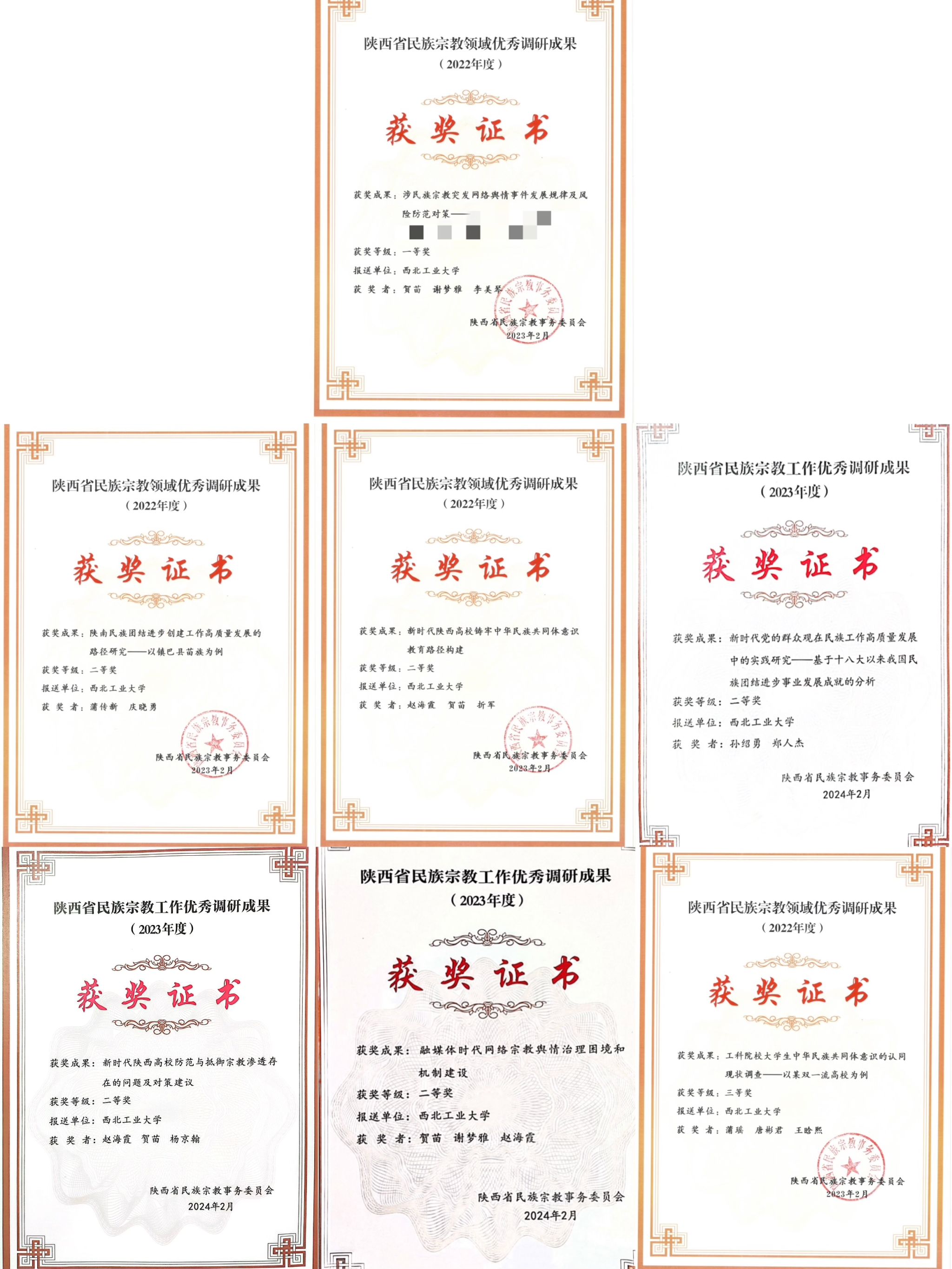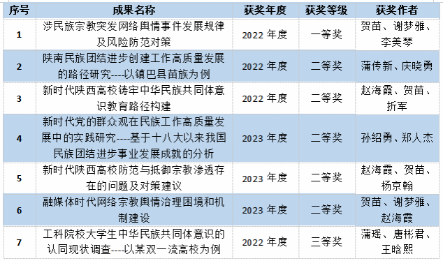2024年初,陕西省民族宗教事务委员会公布了近2年民族宗教工作优秀调研成果获奖名单。必赢官网必赢bwin官方网站2022、2023两年共7项成果入选,其中一等奖 1项、二等奖 5项、三等奖1项。